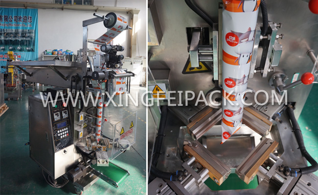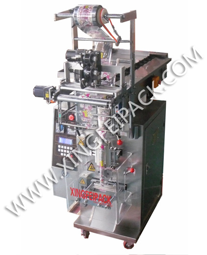 自動鏈斗式包裝機可自動完成計量、填充、封口、打?。ㄐ枇砼浯虼a機)等周期作業(yè);集光電跟蹤、無級調速等功能于一體;封口形式為背封;
