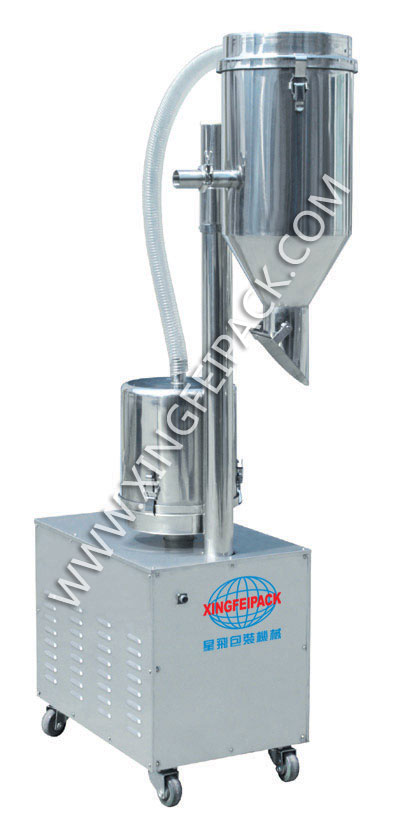 真空上料機(jī)由真空泵〔無油、無水〕,不銹鋼吸料咀、輸送軟管、布袋過濾器〔或316L不銹鋼過濾器〕,振打清理器〔或壓縮空氣反吹裝置〕、真空料斗和料位自動控制裝置等組成,整套系統(tǒng)設(shè)計(jì)合理、制造精美。真空加料機(jī)用于包裝機(jī)、壓片機(jī)加料和用于混合機(jī)加料時,配置略有不同,用戶在訂貨時需作出說明