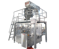 旋轉(zhuǎn)式給袋式自動包裝機(jī)適用于平面袋,自立袋,拉鏈袋等各種